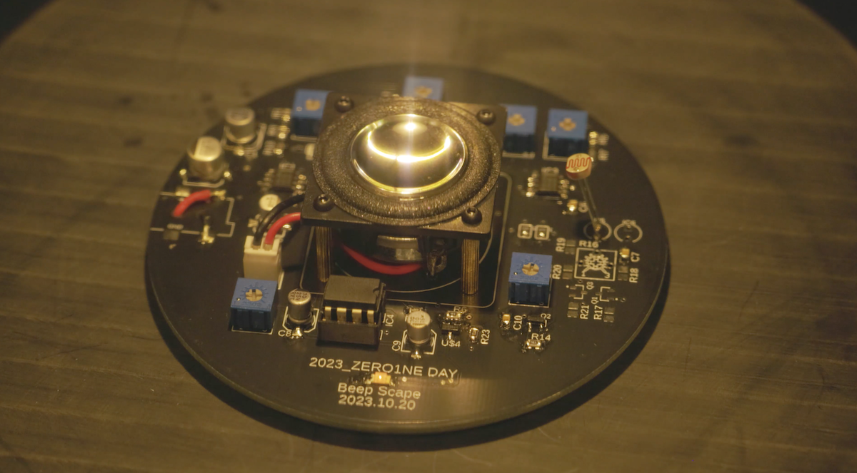 Beepscape for Walla is a simulation of a forest in nature, gathering the beep sounds of old mechanical devices. Each electronic light-sound device has a light sensor on the circuit, it makes the sound of a grass bug made of beep responding to hand-drawing animation projected by a projector. It responds with a slightly different time by animation moving by an optical toy, as a result, this swarm of devices expresses a virtual forest visually and auditorily. Our medium of this project is the 555 TIMER IC invented in the 1970s, a Phenakistoscope that is an optical toy and one of the origins of the projector, and a celluloid that is not used anymore in the industry of animation and cinema. First, an optical toy makes a moving and afterimage using celluloid, and second, the camera captures this afterimage. Third, the projector scatters this moving image on this swarm of electronic devices. An electronic device takes a light, makes unique pulses, and makes a sound of beep such as a bird or an insect. These devices function as a medium, forming one structure, because of its working. We want to take a real working process that usually is hidden in our technological society to an area of appreciation.